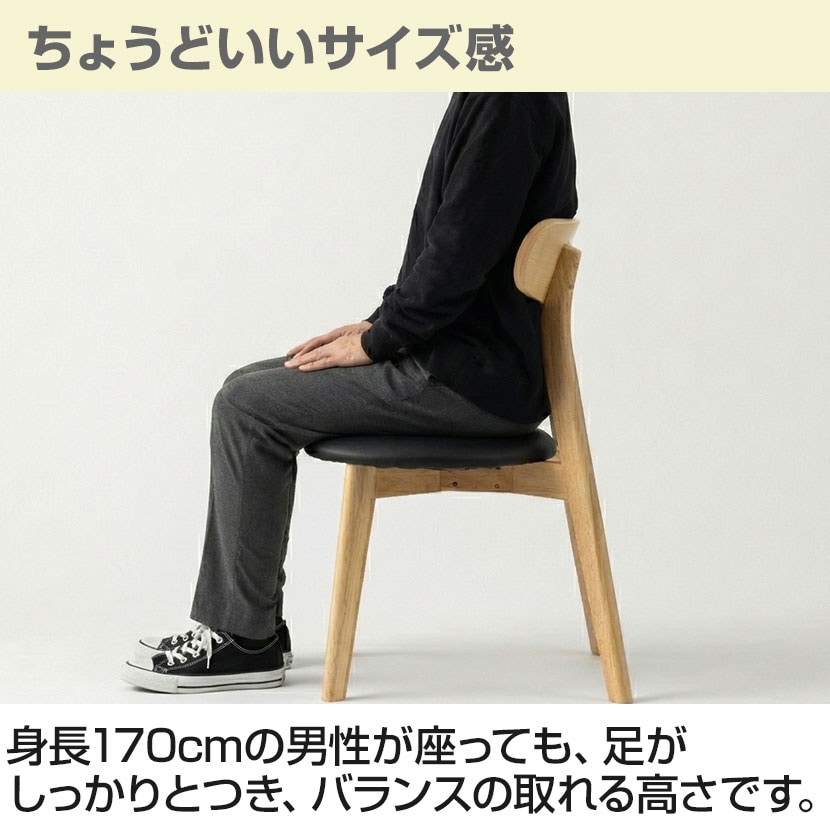 身長170cmの男性が座っても、足がしっかりとつき、バランスの取れる高さです。