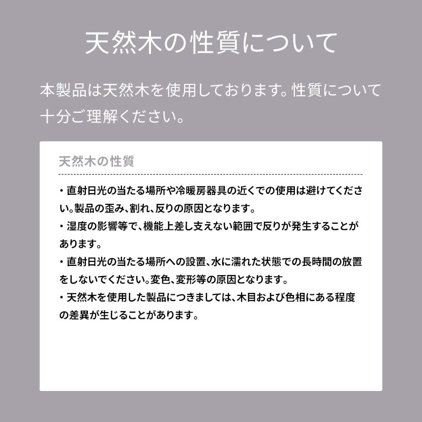 本製品は天然木を使用しております。性質について十分ご理解ください。