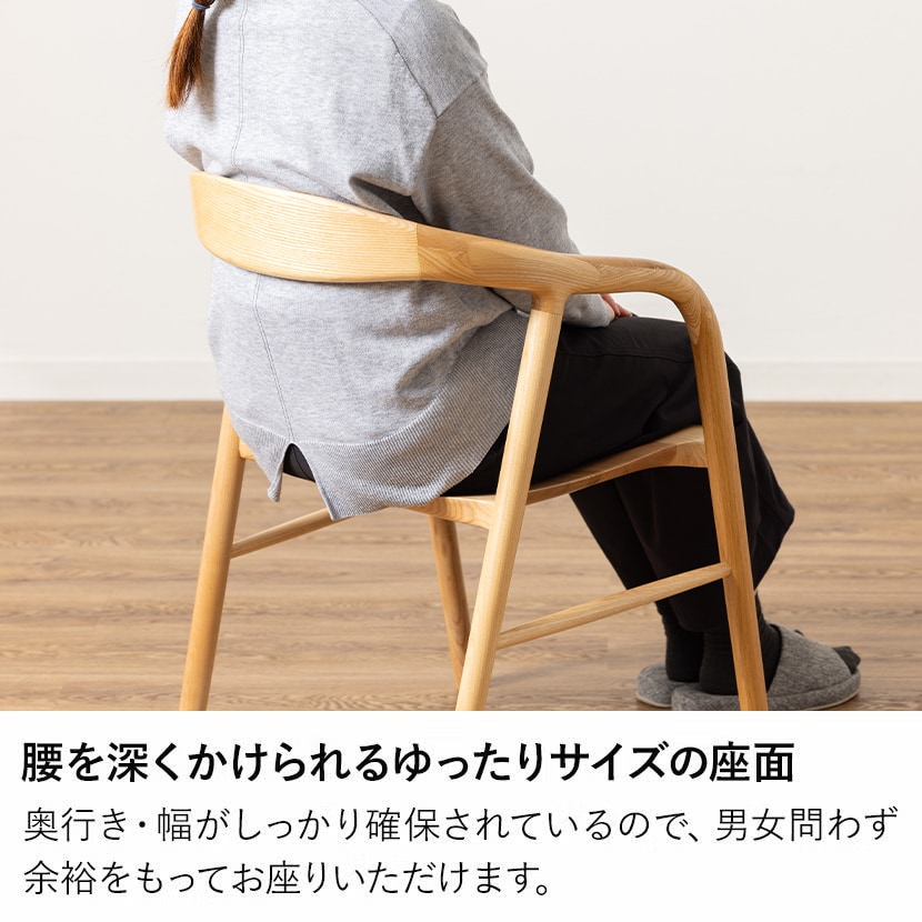 ●腰を深くかけられるゆったりサイズの座面