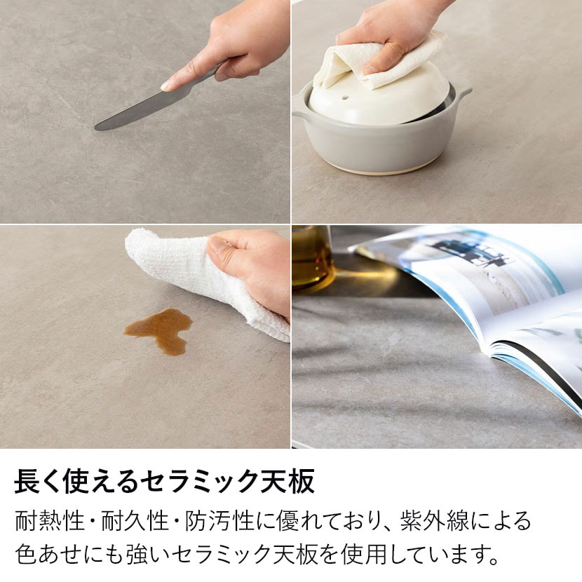 天板には熱や傷に強く、汚れが染み込みにくい高品質なセラミック素材を贅沢に使用しています。