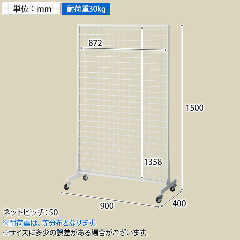 両面同じ位置に大量陳列可能なネット什器です。