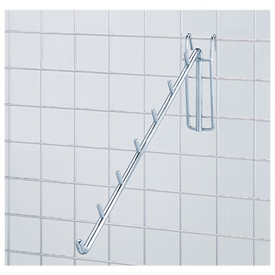 ワイヤーネットに取り付けて使用できる傾斜タイプのフックです。