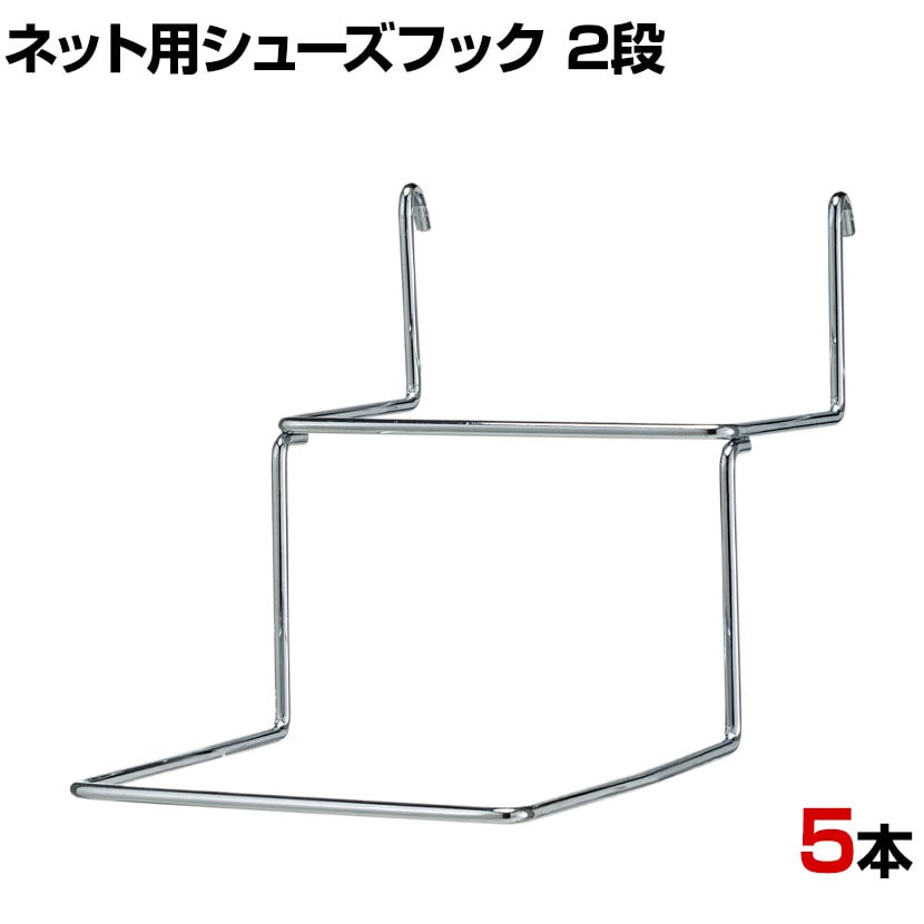 ワイヤーネットに取り付けて使用できるシューズ用のフックです。