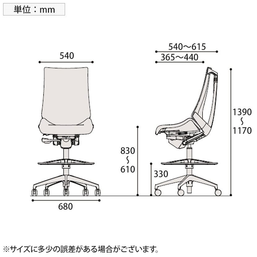 足置き高さ / 330mm