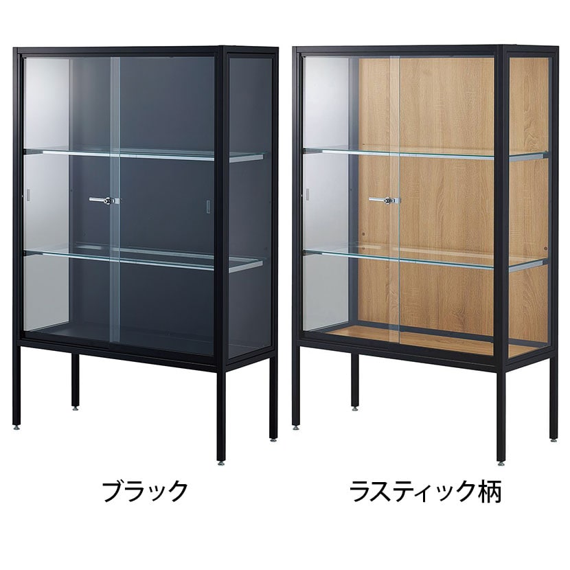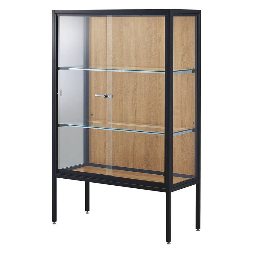 ・スリムでおしゃれなデザインながら丈夫なスチールフレームとクリアなガラス扉のラテラルショーケース。