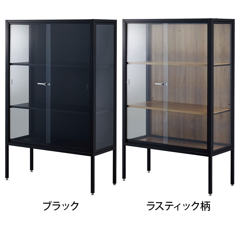 ・スリムでおしゃれなデザインながら丈夫なスチールフレームとクリアなガラス扉のラテラルショーケース。