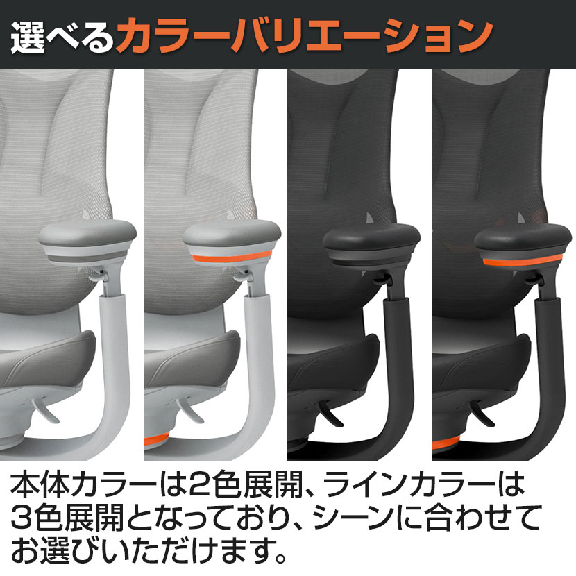 本体カラーは2色展開、ラインカラーは3色展開となっており、シーンに合わせてお選びいただけます。