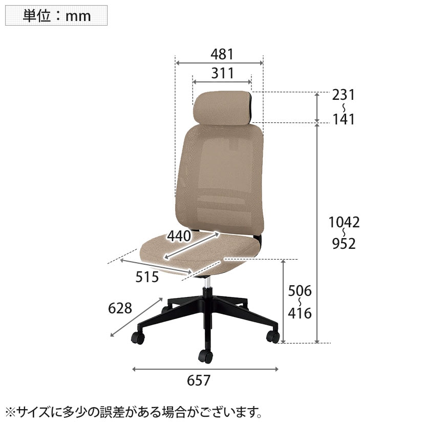 ヘッドレスト付き(90mm上下可動)