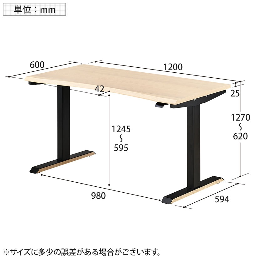 天板下高さ / 595~1245mm