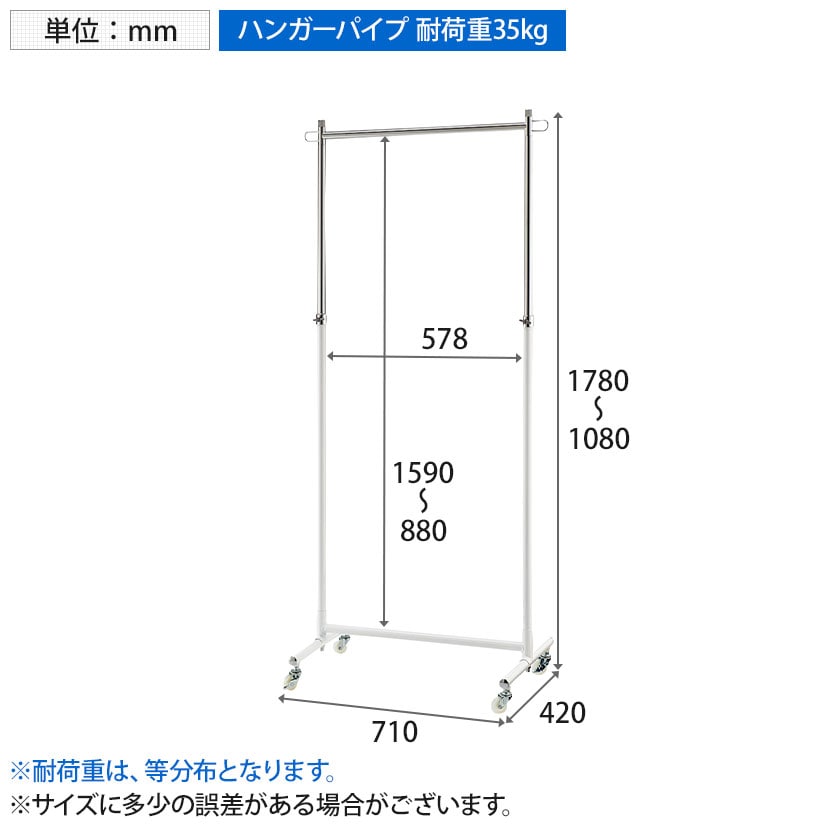 高さは1780mmまで伸縮するので、ロングコートの陳列も可能です。