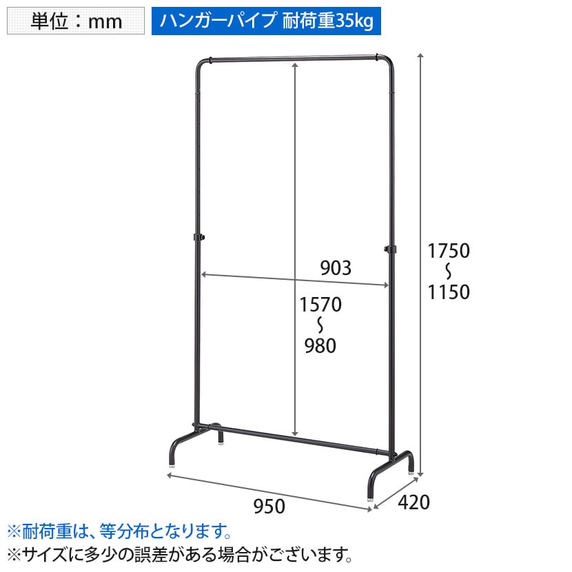 バー内寸 / 幅903×高さ980~1570mm