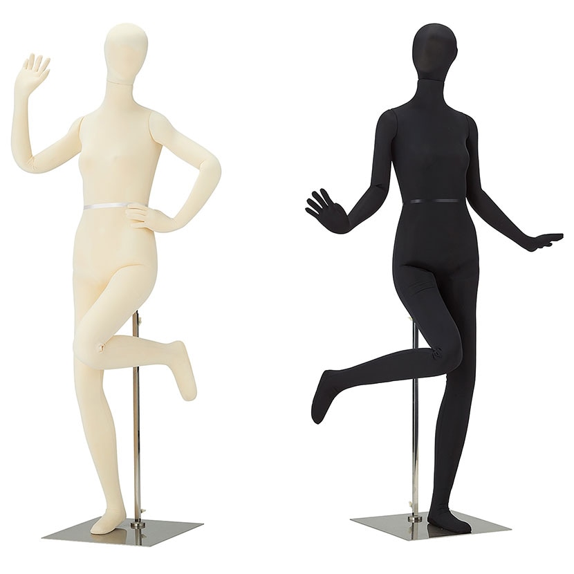 ※フレキシブルマネキンは自由なポージングをお楽しみ頂けますが、バランスには十分気をつけてください。バランスの悪いポージングは転倒の恐れがありますので、お止めください。