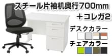 シンプルな頑丈スチールデスク×軽量&コンパクトチェア/片袖1200