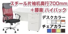 頑丈な片袖机×腰を楽にするメッシュチェア/幅1200mm・ハイバック