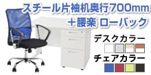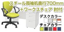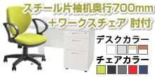 【デスクチェアセット】オフィスデスク 事務机 スチールデスク 片袖机 1000×700 + ワークスチェア セット