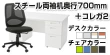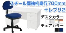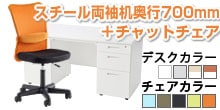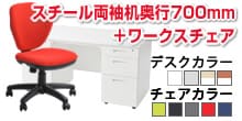 【デスクチェアセット】オフィスデスク 事務机 スチールデスク 両袖机 1400×700 + ワークスチェア セット