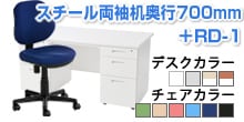【デスクチェアセット】スチールデスク 片袖机 1000×700 + 布張り オフィスチェア RD-1