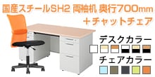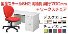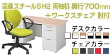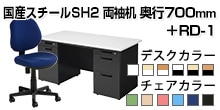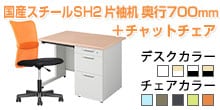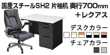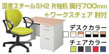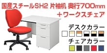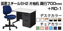 【デスクチェアセット】国産スチールデスク SH 片袖机 1000×700 + 布張り オフィスチェア RD-1