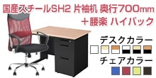 良質国産スチールデスク片袖机×腰を楽にするハイバックメッシュチェア