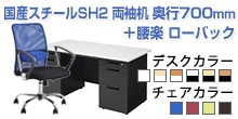 良質国産スチールデスク両袖机×腰を楽にするローハイバックメッシュチェア