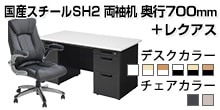 【デスクチェアセット】日本製スチールデスクSH オフィスデスク 両袖机 幅1400×奥行700×高さ700mm + 社長...