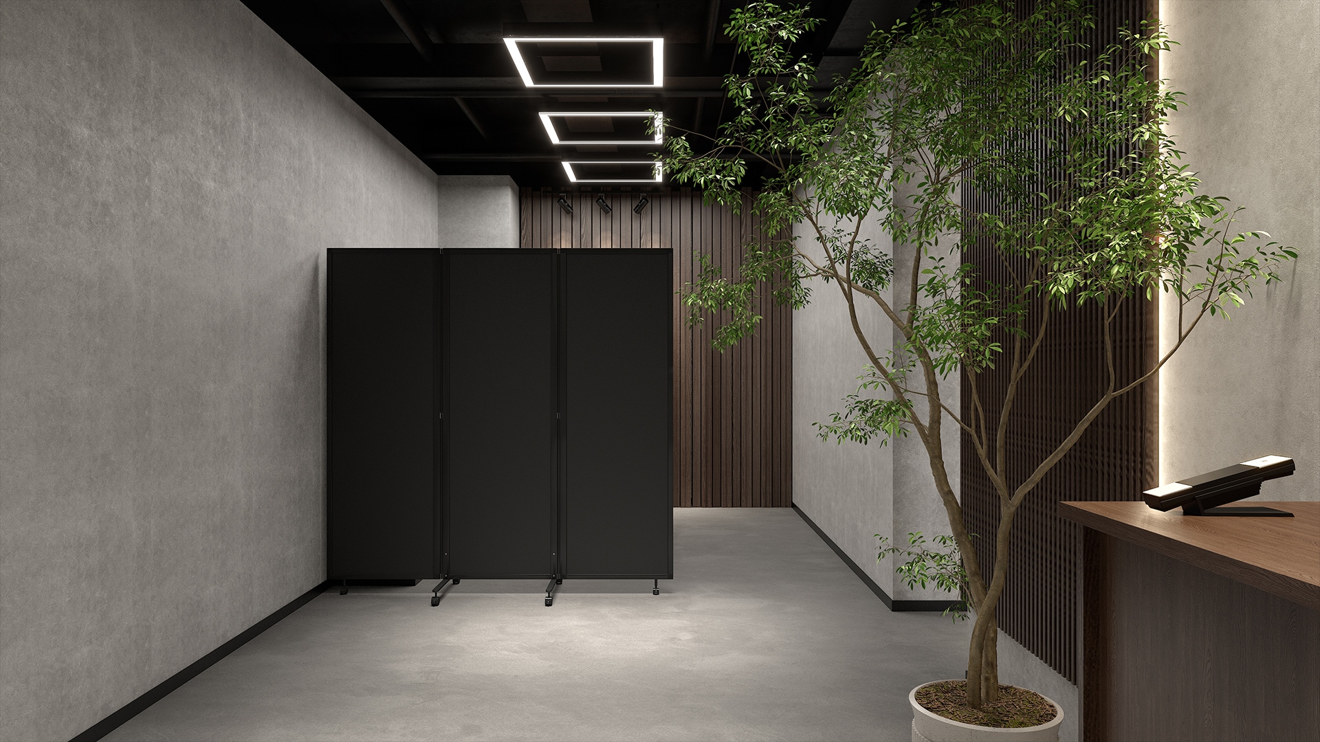 黒ベースで洗練された空間に緑を添えた