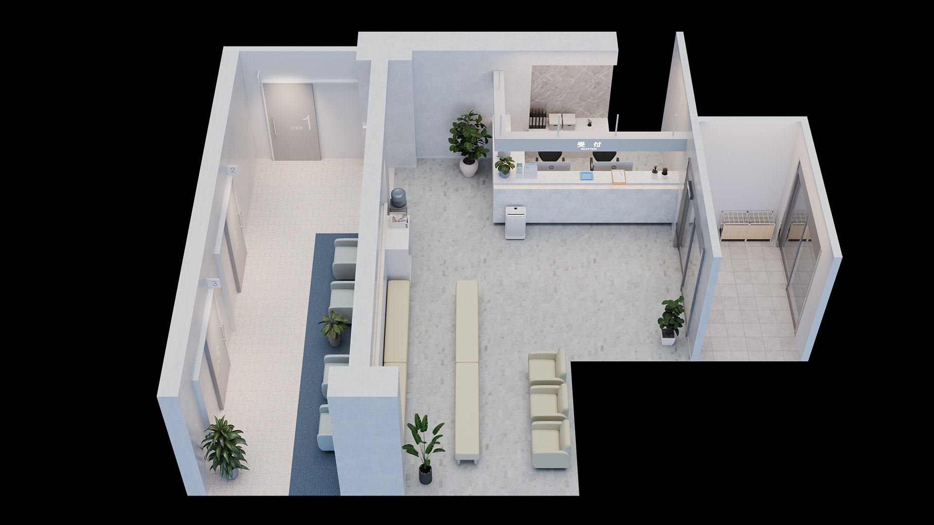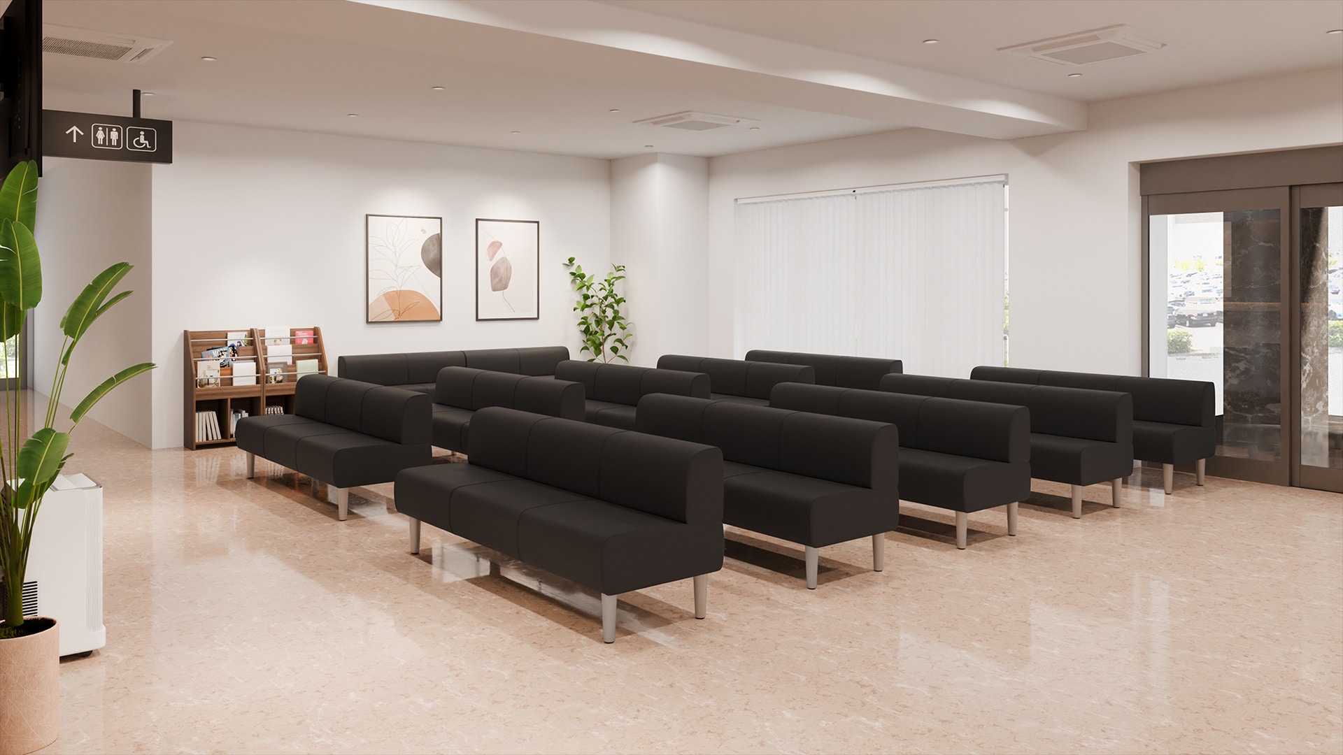 本記事では、病院やクリニック、薬局のエントランスをおしゃれに演出する、デザイン性の高いおすすめレイアウトを3つご紹介します。受付・待合スペースは、患者様が最初に訪れる「施設の顔」。特に病院エントランスの第一印象は、施設全体の信頼感や安心感を左右する重要なポイントです。清潔感のある内装はもちろん、来院人数や施設規模に合わせた受付と待合スペースの計画が、快適な医療環境づくりにつながります。待ち時間を過ごす空間では、座りやすい待合室ソファや長椅子の配置、受付との距離感、通路の広さなども大切な要素。動線が整理されたレイアウトは、患者様が迷わず移動できるだけでなく、スタッフの受付対応をスムーズにする効果も期待できます。以下では、小規模クリニックから大規模病院まで、規模に合わせた受付・待合レイアウトを坪数別にご紹介しているので、ぜひ参考にしてください。