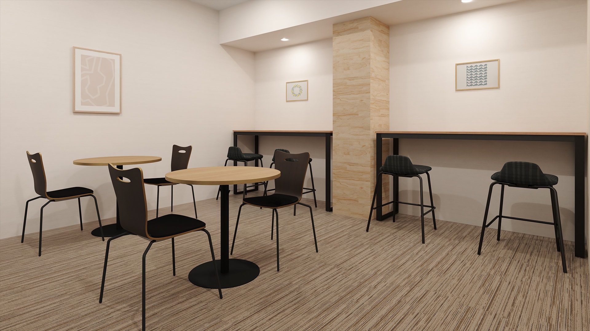 会議に集中しやすいミーティングルームシンプルかつ快適性にもこだわったデザインのミーティングルーム。四方を壁で囲まれたクローズド空間は防音効果が高く、会議に集中できる環境作りを実現。必要最小限の家具に留めたスッキリとした空間で、中央に配置された8人用ミーティングテーブルは、参加者全員の顔を見ながら効果的なディスカッションやプレゼンテーションを可能にします。壁には共有モニターも設置されており、会議がスムーズに進行するよう配慮されています。